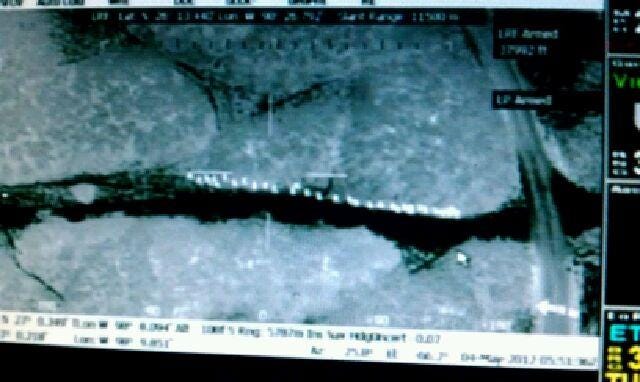 (Taken on a mission from my plane. Each white dot is a person who intends to cross)