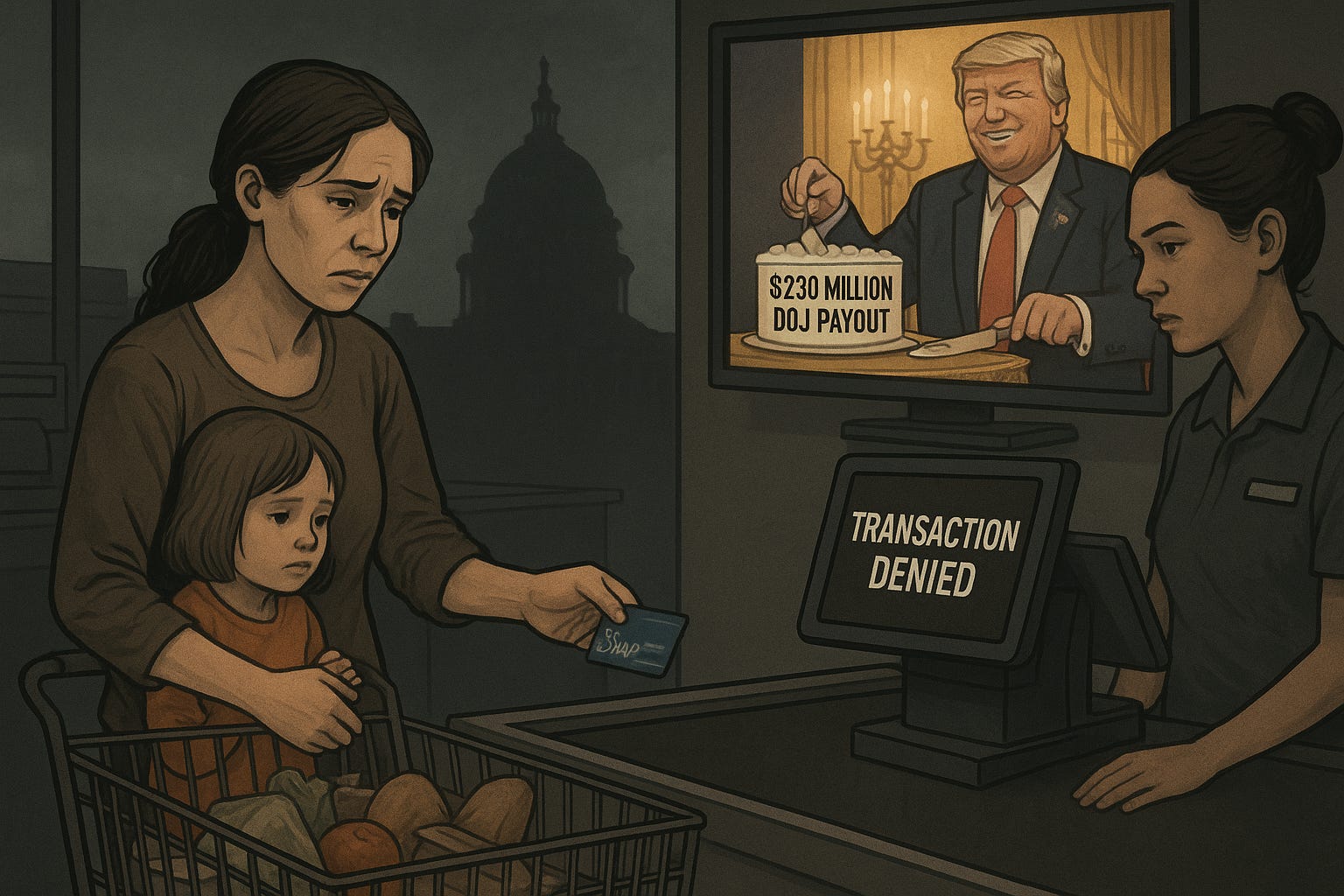 Millions lose food stamps, Trump gains millions from the DOJ, and Congress doesn’t even show up.