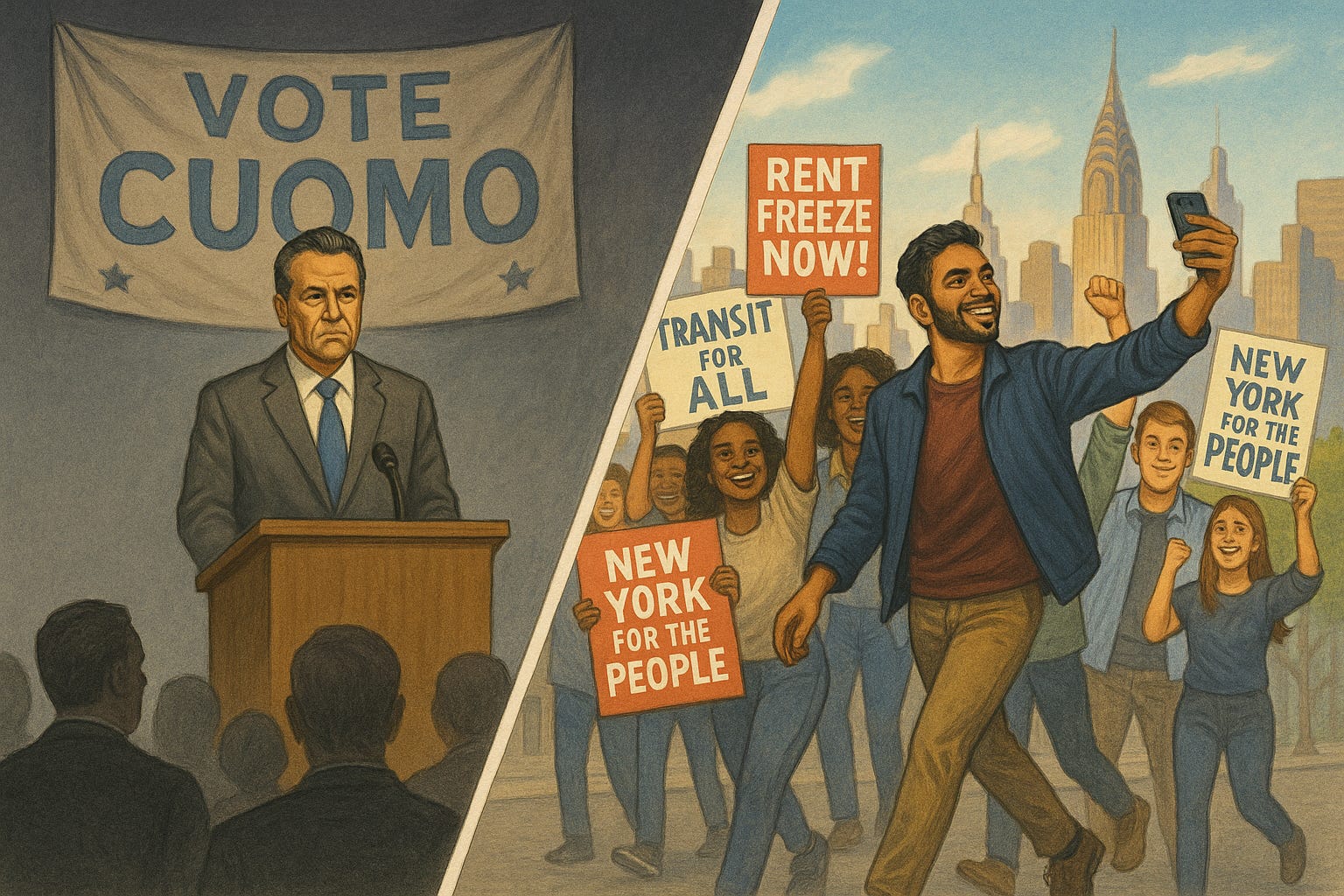Cuomo embodied the old guard. His campaign focused on well-worn themes like public safety, homelessness, and education. These are important issues, but he treated them with a business-as-usual tone. His campaign was slow and formulaic, delivering boilerplate speeches in controlled settings and avoiding the press. On social media, he barely registered. His ads were conventional, and his supporters seemed more nostalgic than inspired.