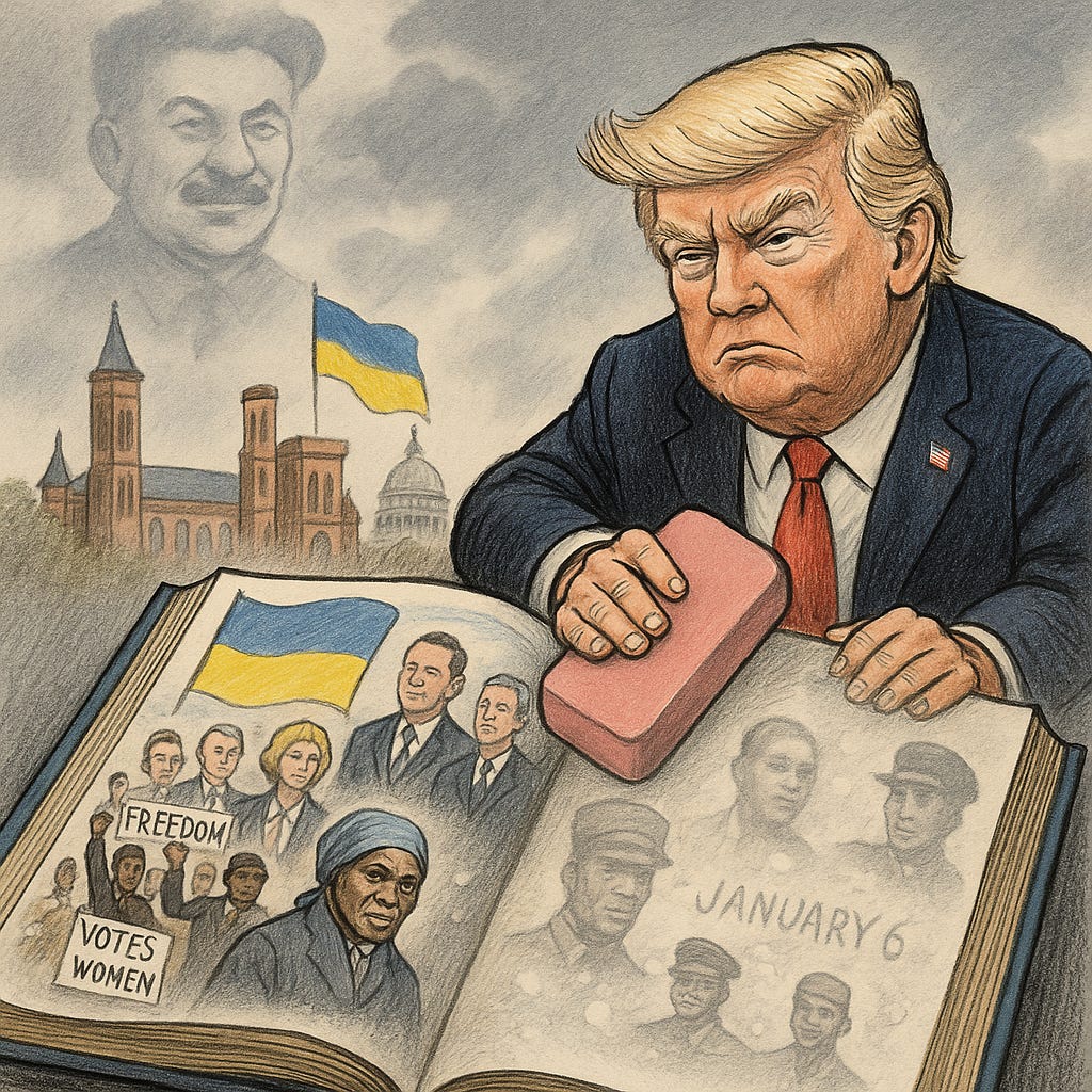 Piece by piece, Trump is trying to replace facts with fantasy—history with propaganda. The danger is not just what it erases, but what it teaches: that truth is negotiable, and loyalty to one man matters more than loyalty to country.
