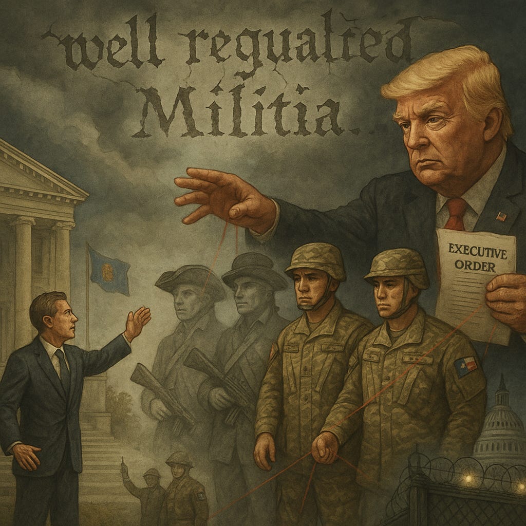 If the Guard can be taken over by Washington whenever it wants, then the “militia” that the Second Amendment promised the states — and the people — isn’t really there. That undercuts not just state sovereignty, but the deeper principle that the people themselves should have a defense outside of federal control.